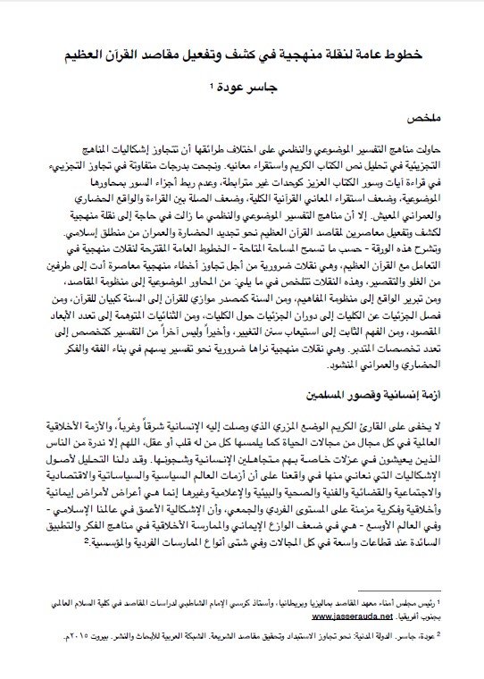 خطوط عامة لنقلة منهجية في كشف وتفعيل مقاصد القرآن العظيم أبحاث للقراءة والتحميل من هنا : https://www.jasserauda.net/wp-content/uploads/2025/08/خطوط-عامة-لنقلة-منهجية-في-كشف-وتفعيل-مقاصد-القرآن-.pdf أقرأ المزيد