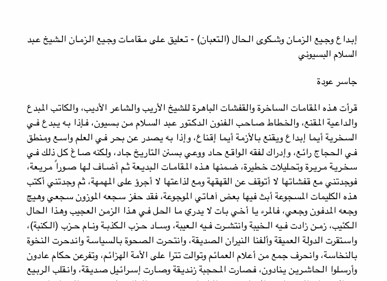 إبداع وجيع الزمان وشكوي الحال (التعبان) – تعليق علي مقامات وجيع الزمان الشيخ عبد السلام البسيوني أبحاث للقراءة والتحميل من هنا : https://www.jasserauda.net/wp-content/uploads/2025/08/تعليق-على-مقامات-الشيخ-عبد-السلام.pdf أقرأ المزيد