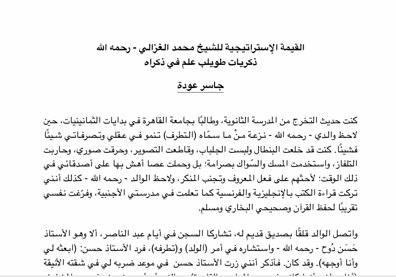 القيمة الإستراتيجية للشيخ محمد الغزالي – رحمه الله أبحاث للقراءة والتحميل من هنا : https://www.jasserauda.net/wp-content/uploads/2025/08/القيمة-الإستراتيجية-للشيخ-الغزالي-معدل.pdf أقرأ المزيد